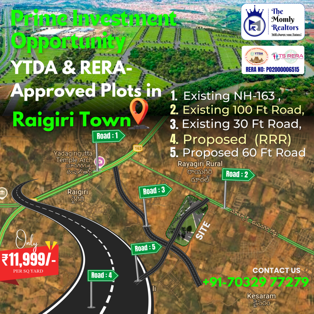 Explore premium YTDA and TS RERA-approved plots near Yadadri Temple, offering excellent connectivity, modern amenities, and a serene environment. Perfect for building your dream home or securing a high-potential investment.